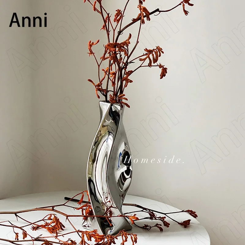 Product Name: Yaratıcı Galvanik Süreci Seramik Vazo İskandinav Modern Gümüş Kaplama Spiral Ayna çiçek Vazo Oturma Ofis Konferans Odası Masası çiçekler Tencere