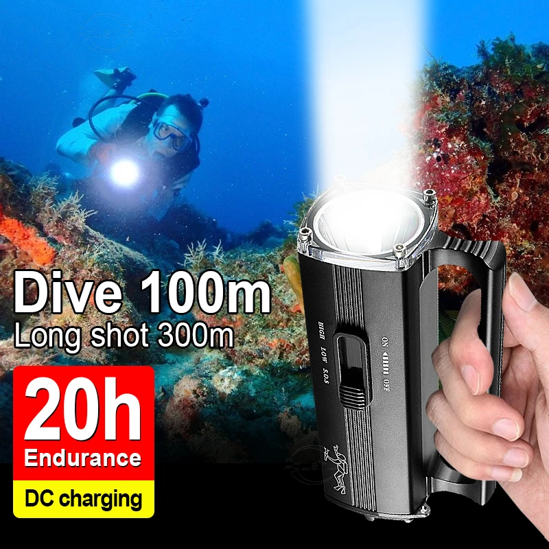 Product Name: 100 Metre Dalış Led El Feneri Güçlü Sualtı Avcılık El Feneri CREE XM L2 Meşale ışık şarj Edilebilir Kamp Feneri Lambası
