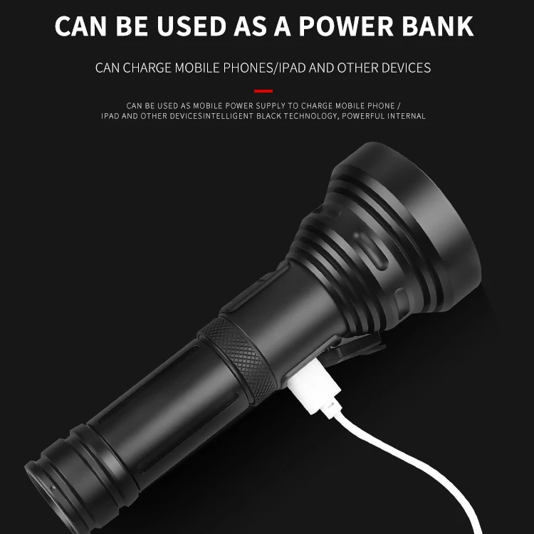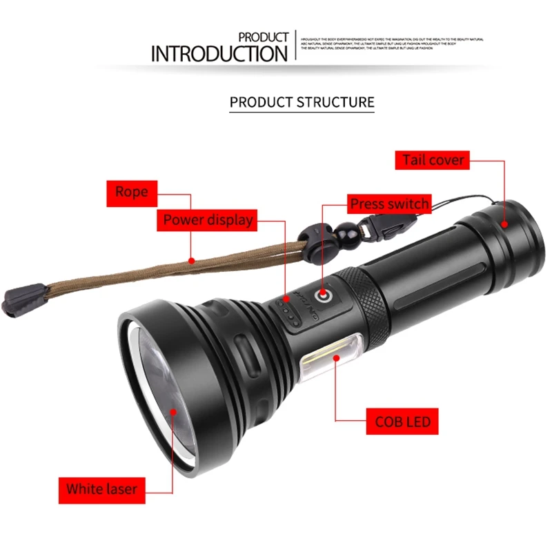 Product Name: 10W 1500m Güçlü LED COB El Feneri çalışma ışığı IPX4 Açık Kamp Aydınlatma şarj Edilebilir 18650 26650 Pil El Feneri 5V 1A